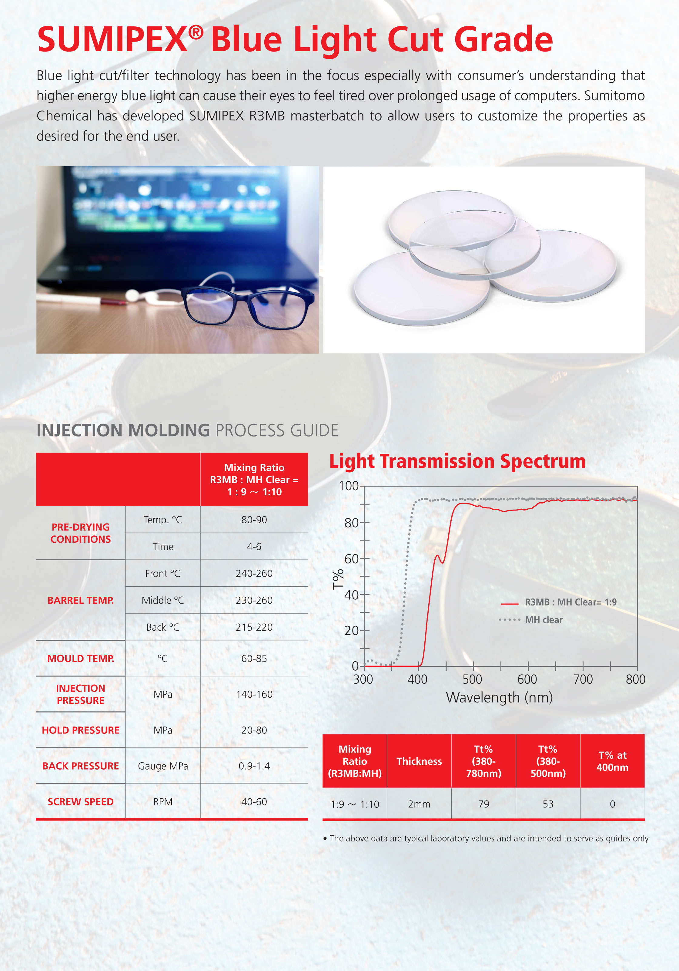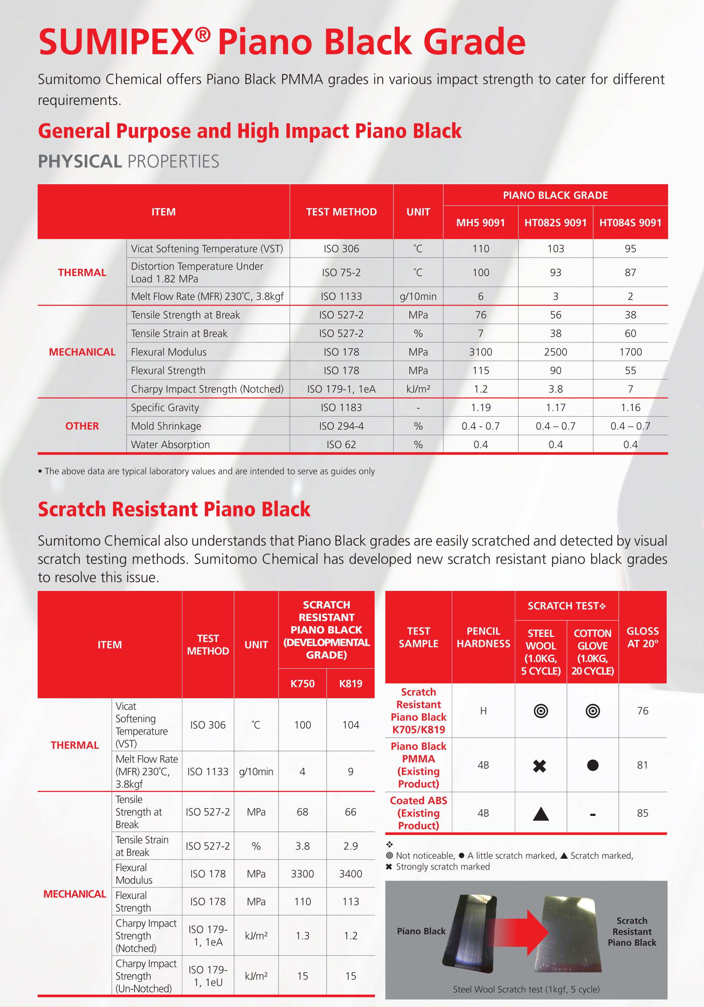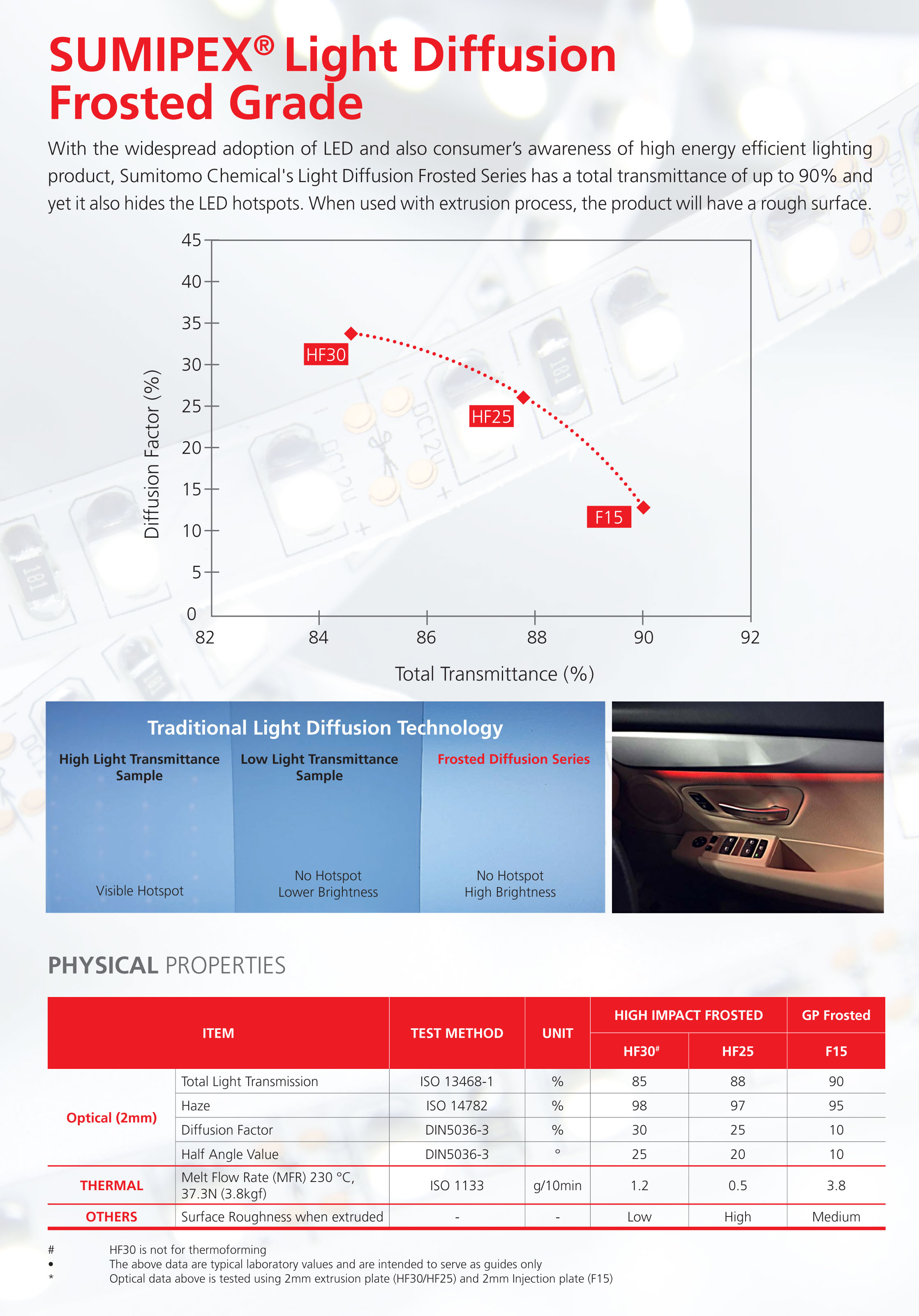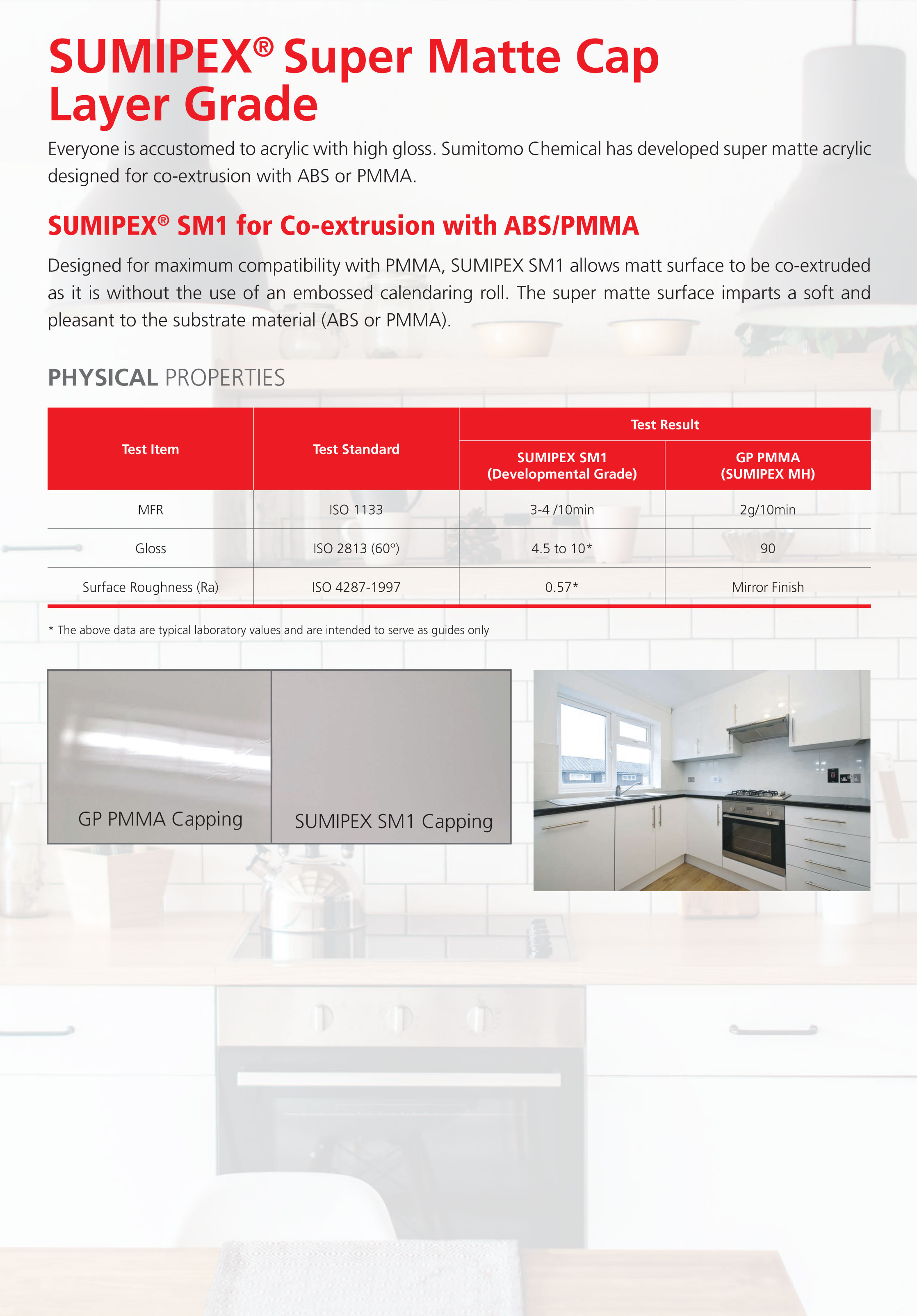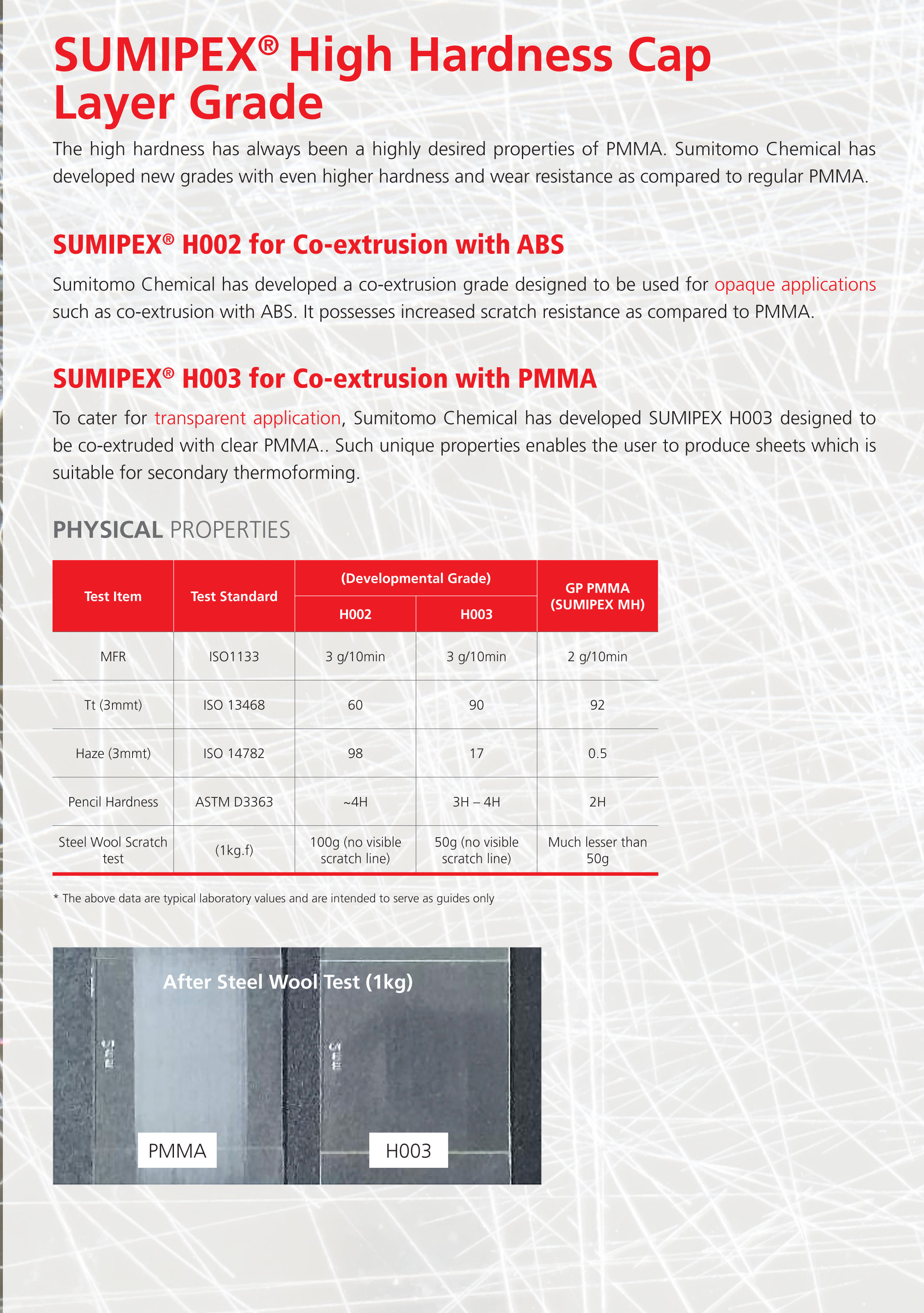 SUMIPEX® is the registered trademark of Sumitomo Chemical for its Polymethyl Methacrylate resin (PMMA), manufactured in Singapore.